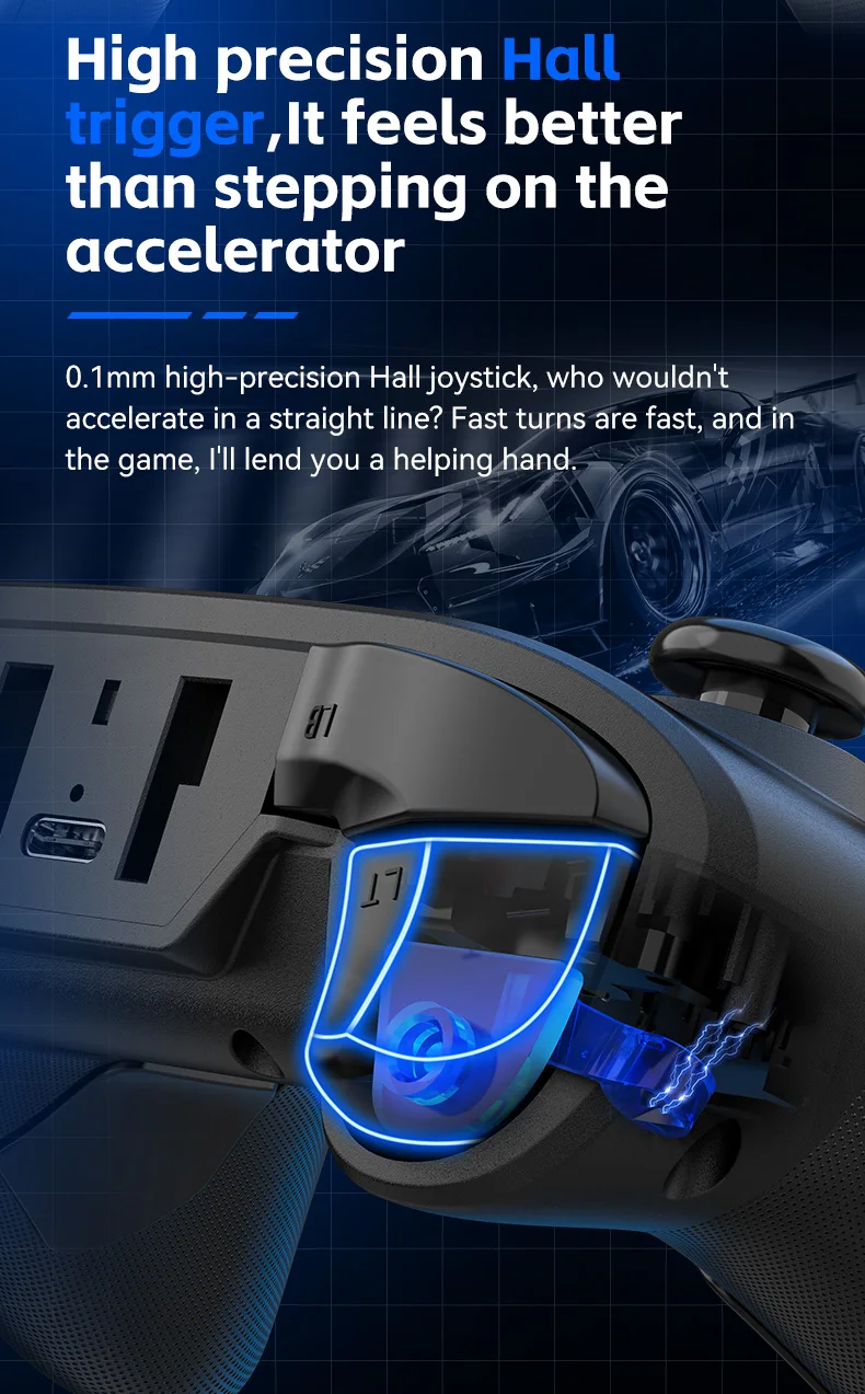 2. Joystick Hall, contrôle précis sans dérive ; Gâchette Hall haute précision.