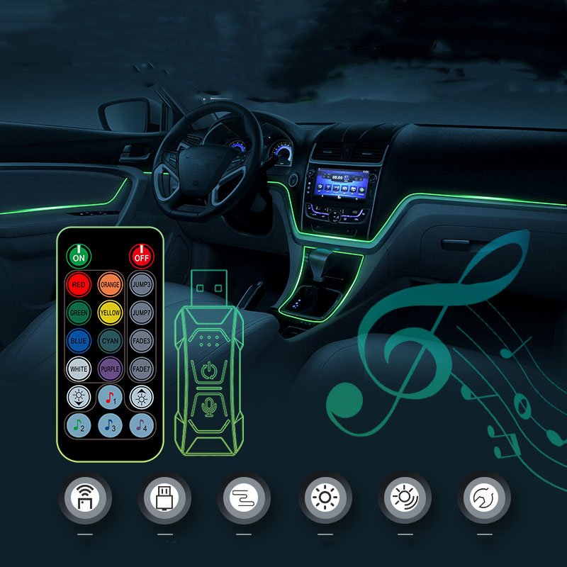 Lumière d’ambiance pour voiture 64 couleurs, bande en fibre acrylique 18-en-1 avec éclairage ambiant en cascade synchronisé avec la voix