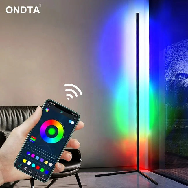Dropshipping – Lampe de sol d’angle LED nordique moderne, 120 cm, décorative, RGB, avec télécommande, trépied.