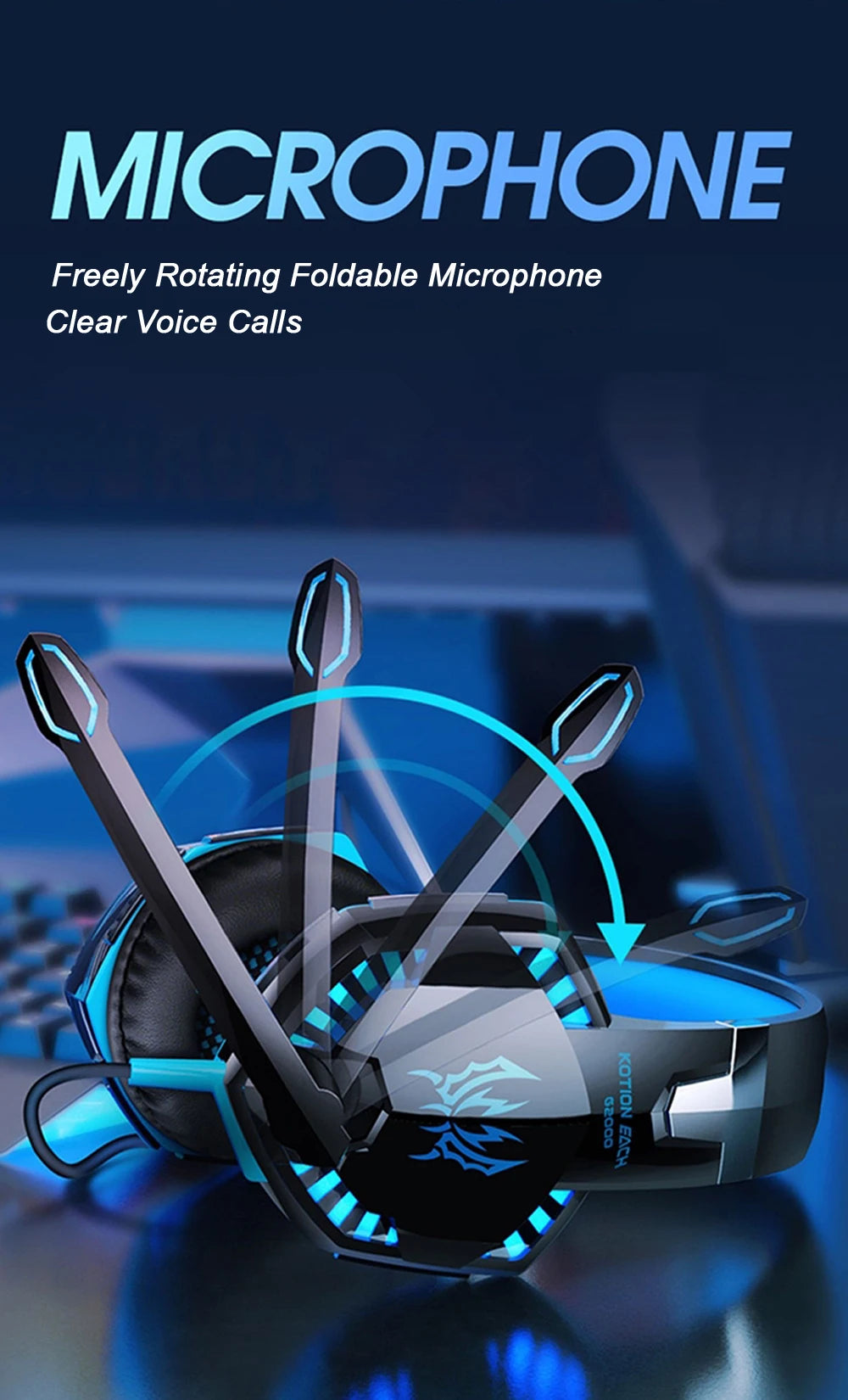 Casque Gaming G2000 – Son stéréo, basses profondes, casque filaire avec éclairage et microphone pour PS5, PS4, XBOX, PC, ordinateur portable