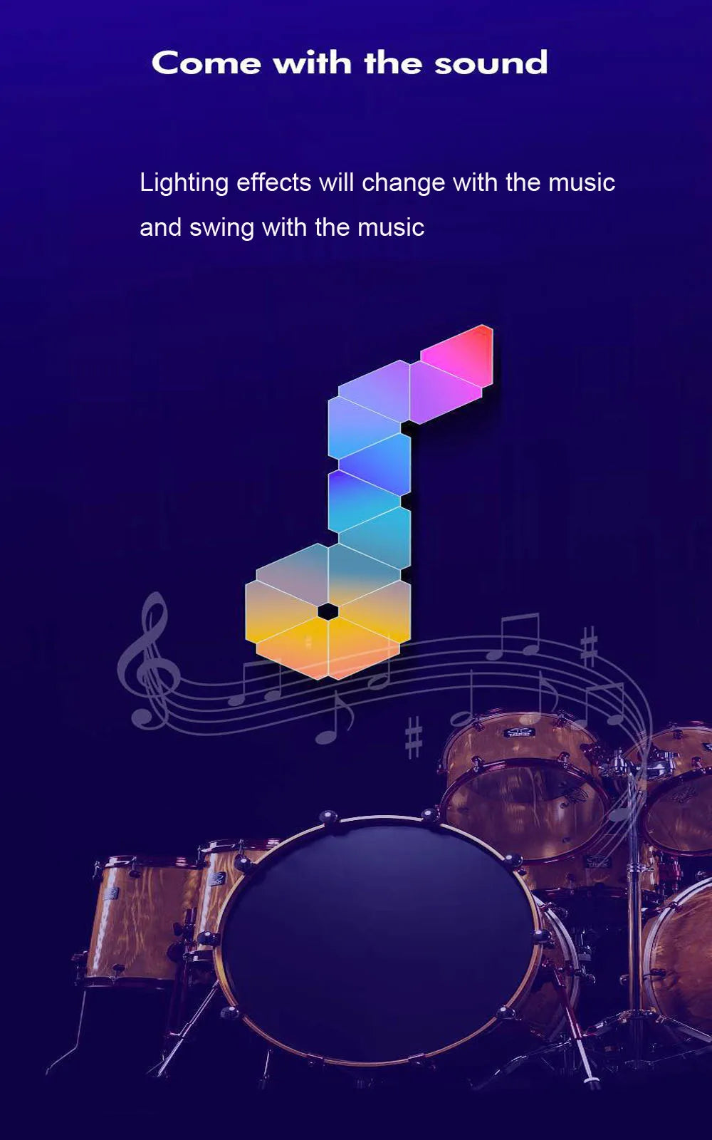 Lampe Murale Triangulaire LED RGB – Lampe Quantique Intelligente Éclairage d’Ambiance avec Réaction au Rythme – Lumière de Fond pour Chambre, Chevet, Bureau, Décoration