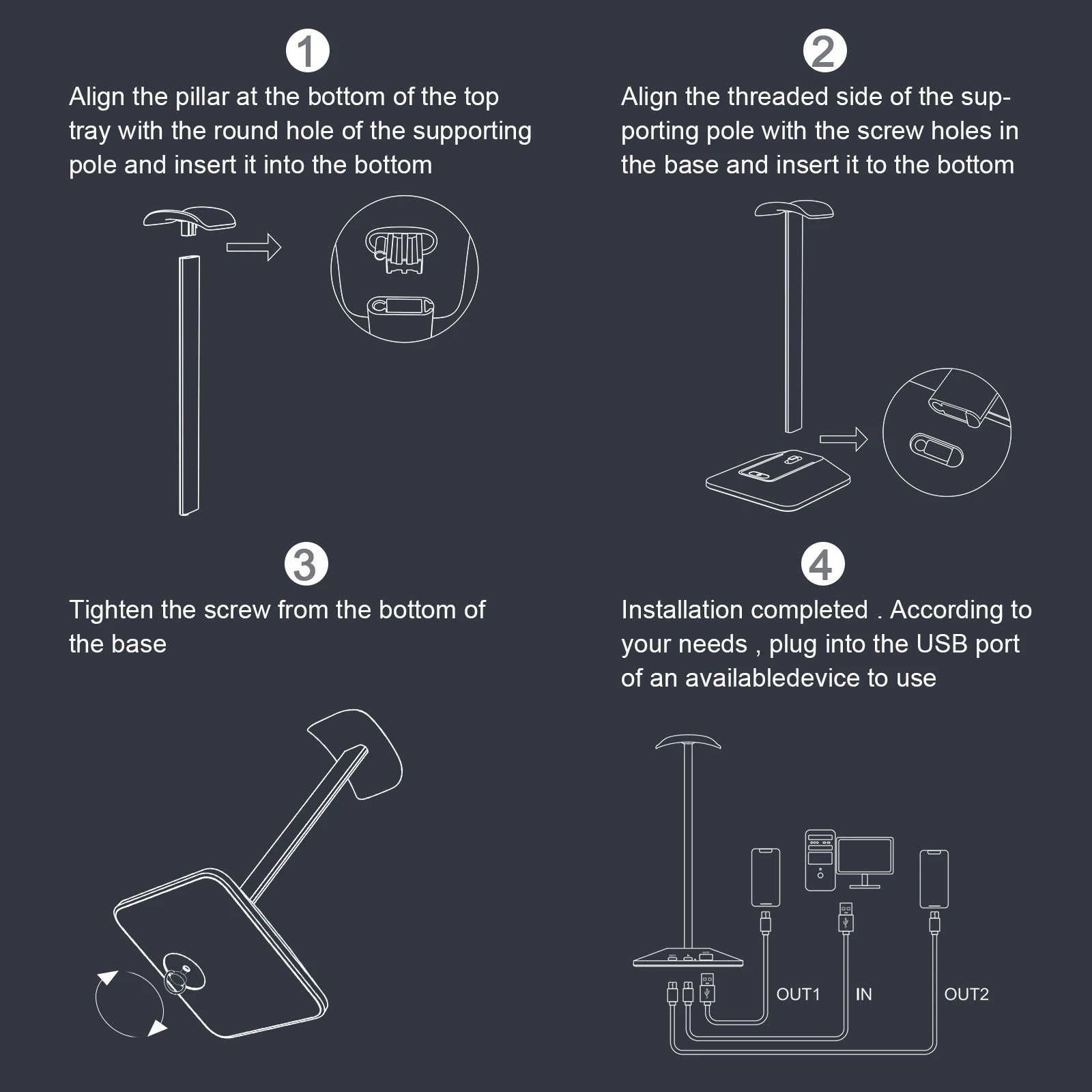 Étape 1 : Insérez le côté fileté de la tige de support dans la base en alignant avec les trous de vis.