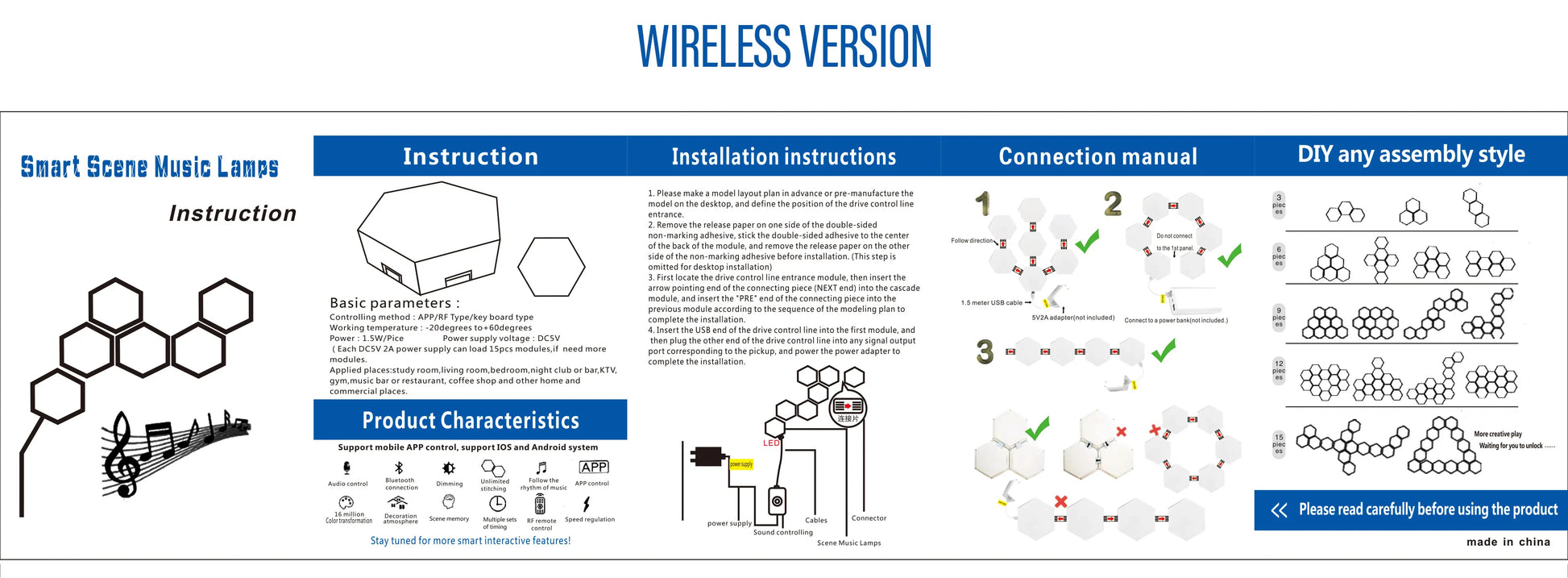 • RGB Intelligent Hexagonal Wall Lamp :The lamp is designed in a hexagonal shape, which adds a unique touch to your room decor. It also has RGB color-changing capabilities, allowing you to customize the ambiance of your space.